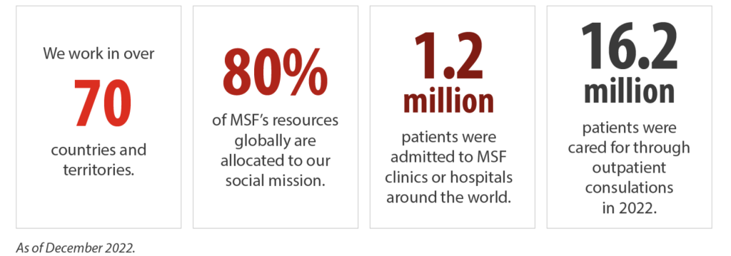 Médecins Sans Frontières brings medical humanitarian assistance to those affected by conflict, disasters, epidemics or exclusion from healthcare.